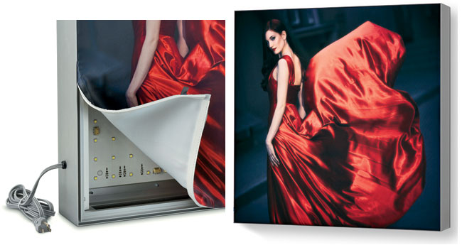 Non-illuminated and energy efficient LED snap frames offer quick change of graphics and are maintenance-free. Choose heavy duty, lightweight or ultra thin stylish models in anodized aluminum or durable powder-coated color finish, single or double sided. Led edge-lit panels, LED slim light boxes, Frameless Fabric Light Boxes custom built for your needs. We have solutions for every customized light application needed and provide reliable service, high quality products to meet your budget.